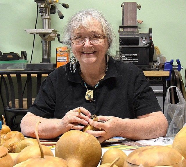 "There is something wonderful about putting one's hands into the soil to plant the seed, nurturing it until the blossoms form, then protecting them until they develop into natural canvases upon which to work my art, " she said. "Working with gourds is a combination of my art and heritage bound together in a spiritual journey with Mother Earth."