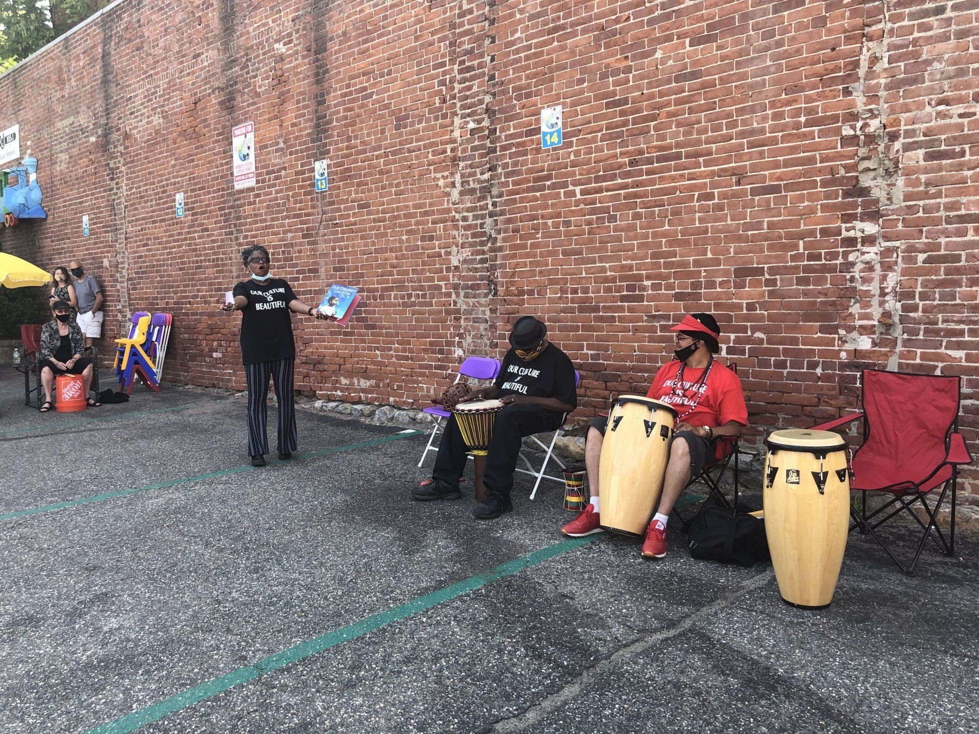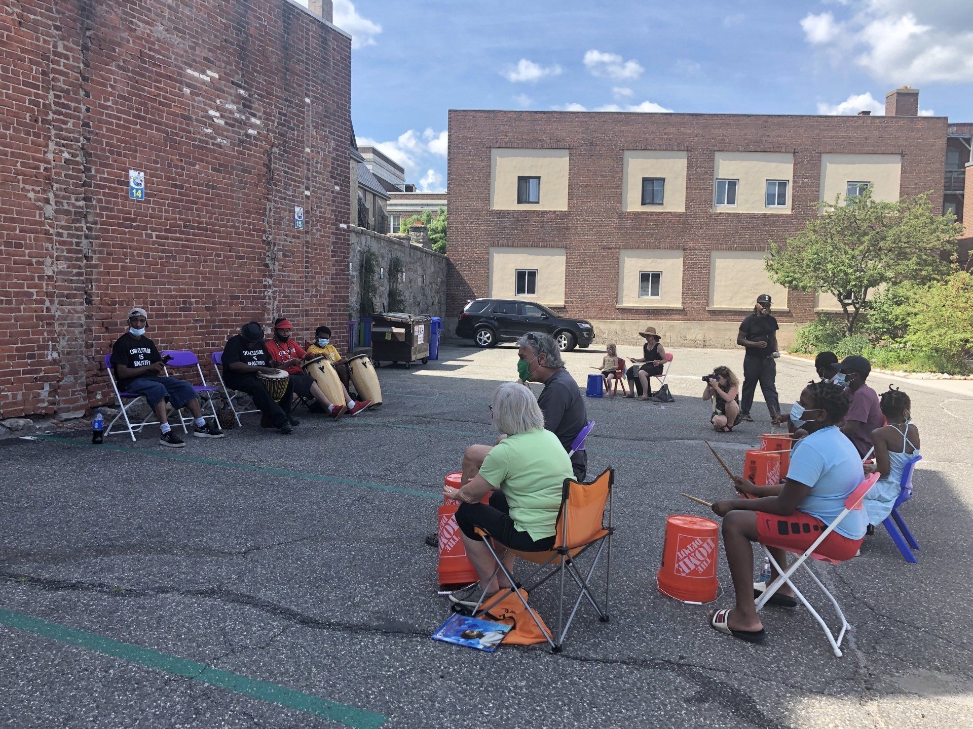 Our Culture is Beautiful drum circle in KidsPlay Children's Museum's parking lot. Photos by Steph Burr and Maddie Stenson.