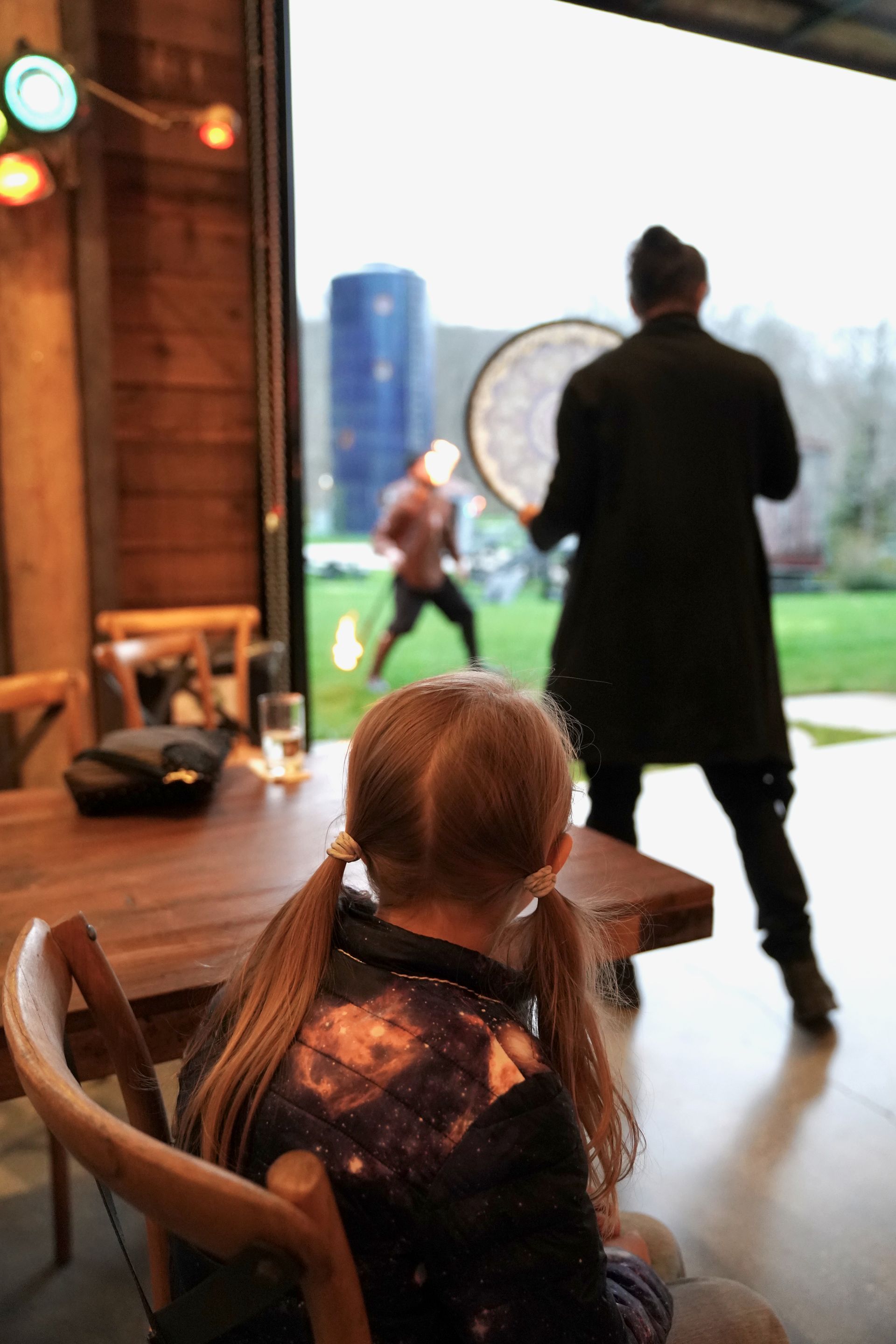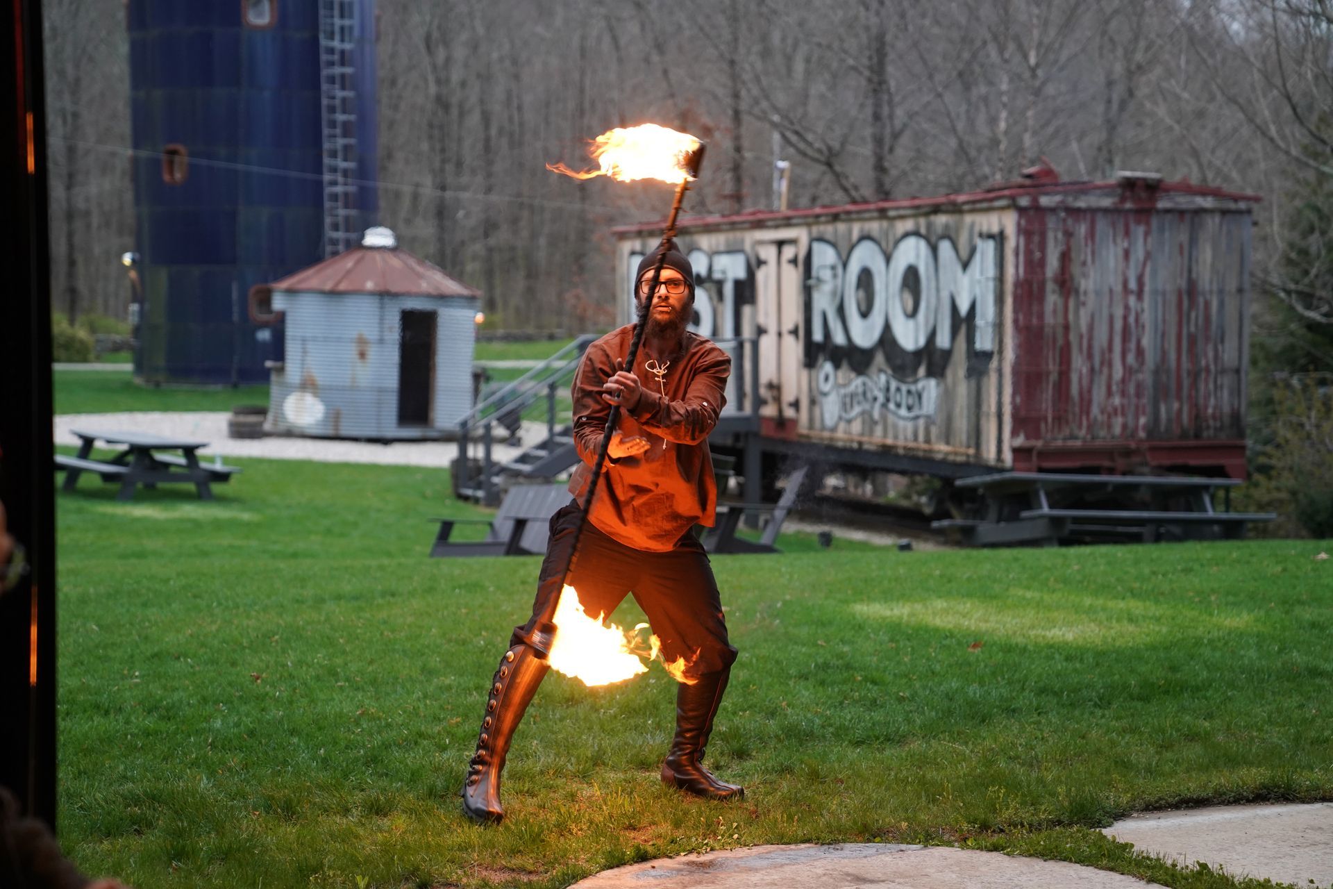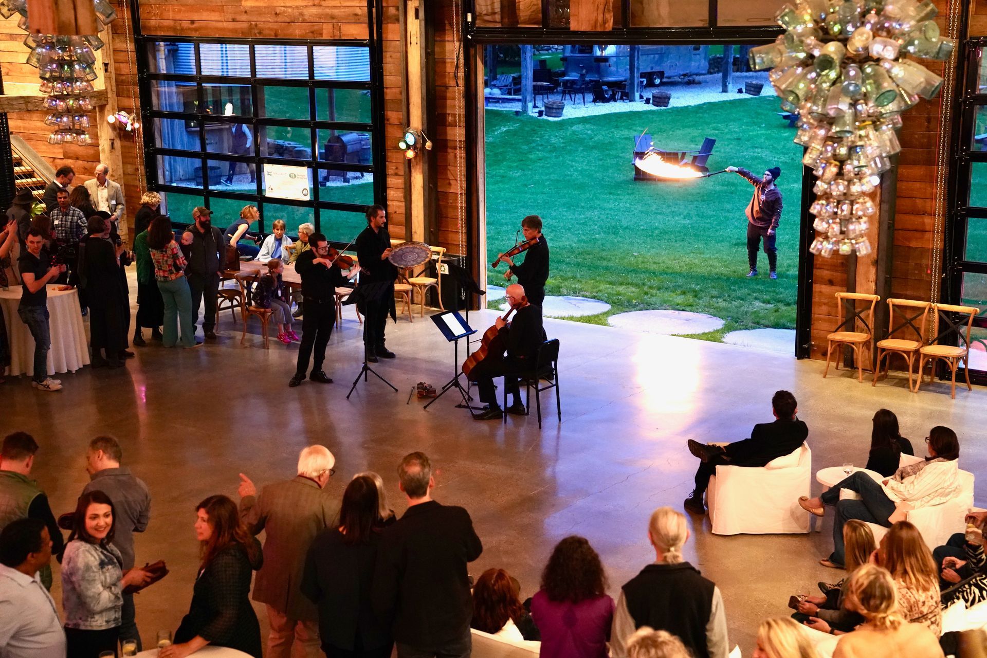 To close out the night, the doors to Spring Hill were opened for a special side by side performance. Musicians from the Cuatro Puntos Ensemble performed a few songs indoors, while Cinderfella, a professional fire spinner, danced outside with his flames to the classical, genre-defying works being played.
