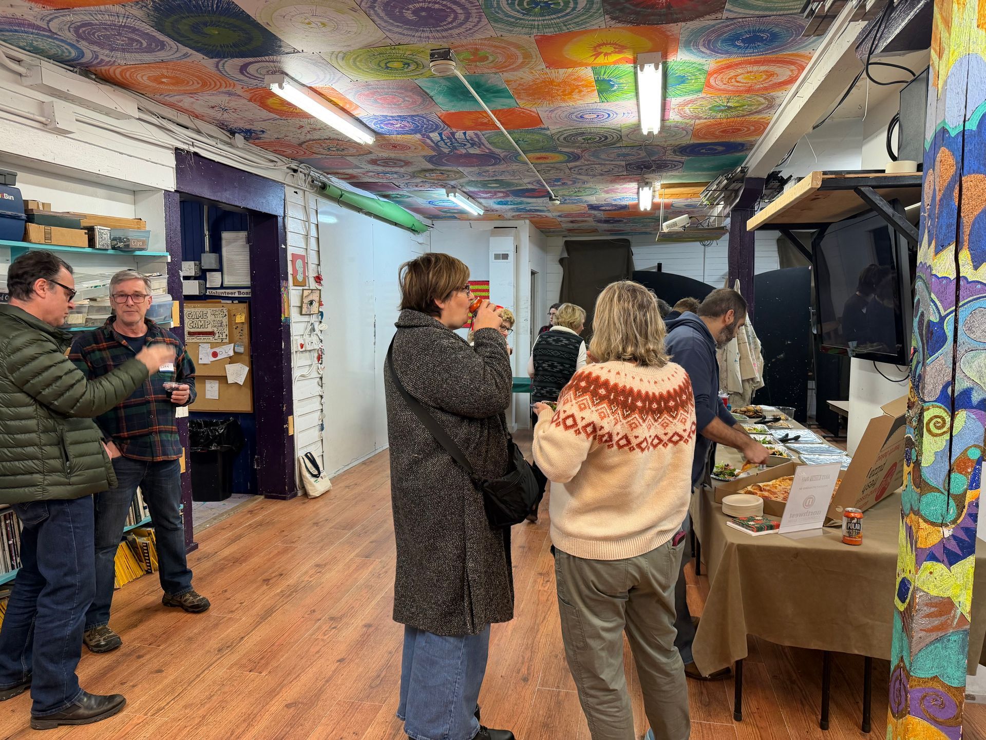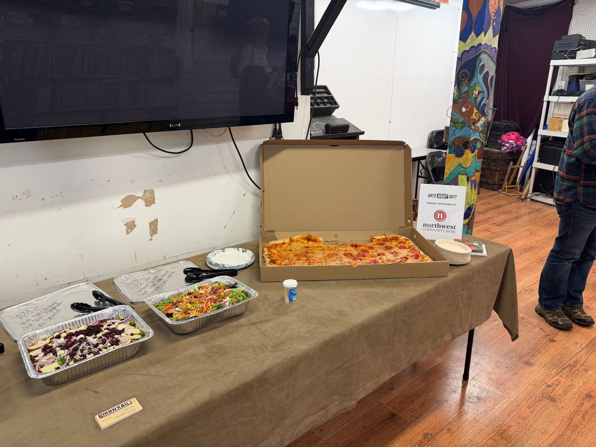 Guests enjoyed pizza sponsored by the Northwest Community Bank Foundation, salads donated by the Iron Rail, and wine donated by a friend of the NWCT Arts Council.