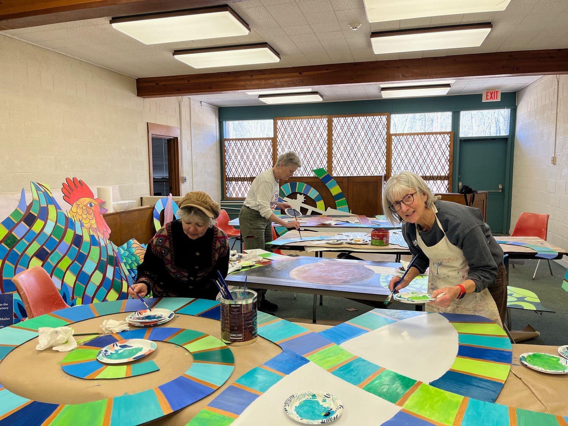 Community artists assist with painting the mural. Photos courtesy of the Litchfield Arts Council.