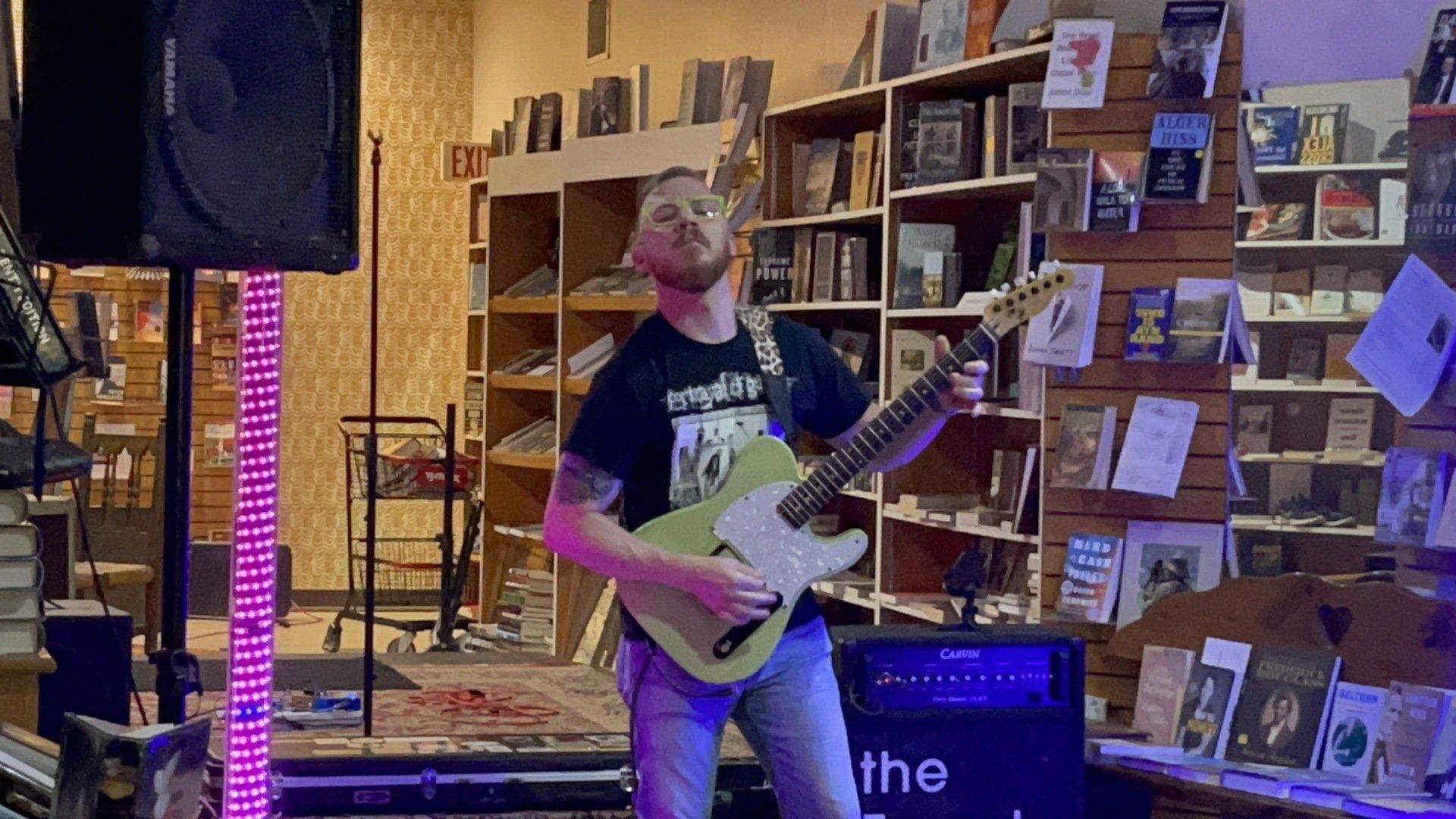 Down the street, at Howard’s Bookstore, the party was just getting started with an opening performance from Ben Charles Gladstone, his last performance of the night, followed closely with an electrifying performance by the Forest Room.