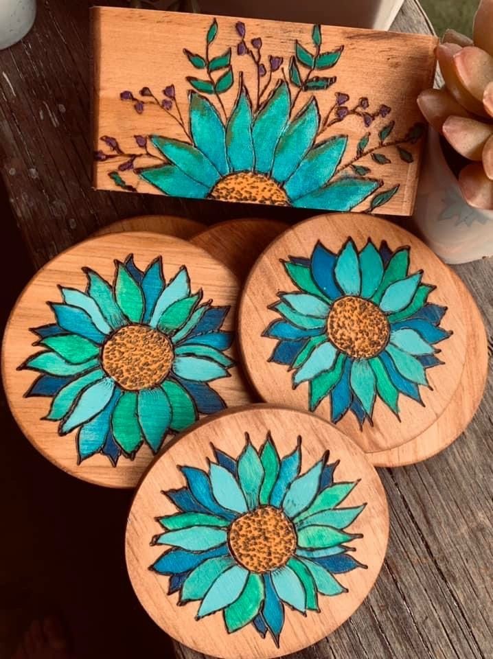 Ariel creates boho-style wood burned art, coasters, jewelry, clay bowls, and paintings. If it’s art - she does it! She passionately crafts functional art across mediums, infusing each unique work with her signature hippie-chic style. Sarah's diverse artworks make one-of-a-kind gifts, accessories and home goods.