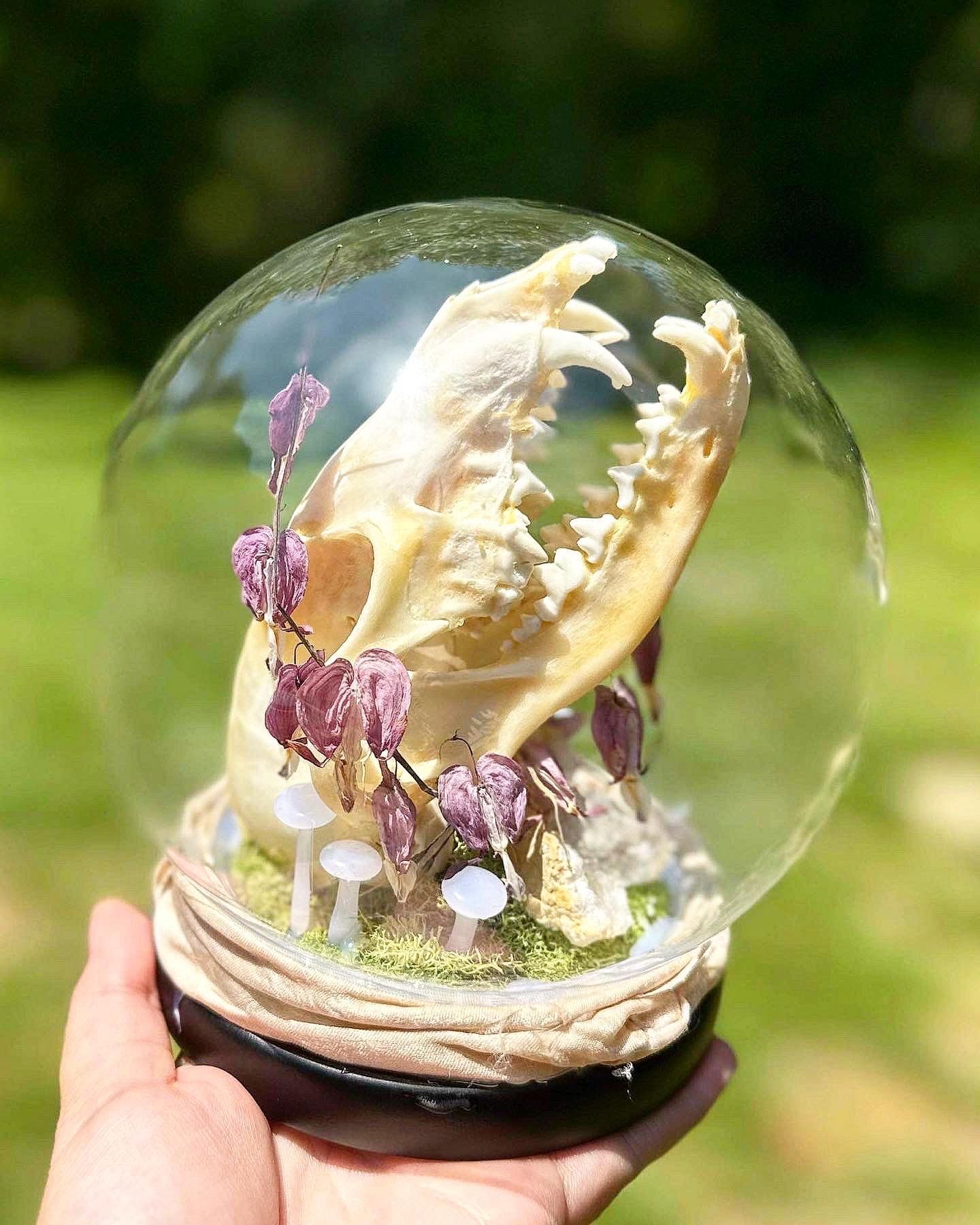 Maria handcrafts frames, domes and lanterns showcasing preserved insects, spider webs, skulls and other oddities from nature. Her glass-enclosed pieces transform delicate butterflies, exotic beetles and intricate bones into artistic displays. Mix and match to create a surreal Cabinet of Curiosities.