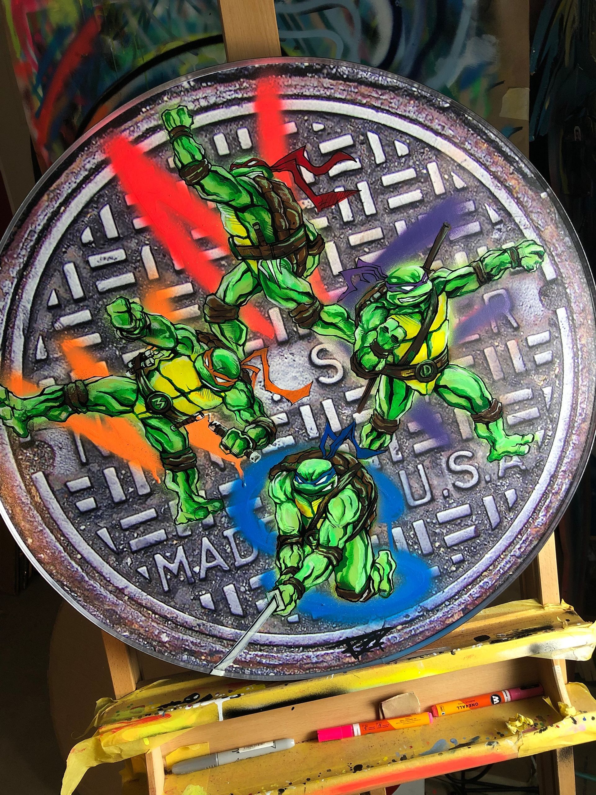 Robbie upcycles discarded materials into bold, dynamic remixes of classic comics and street art. His work transforms forgotten objects into one-of-a-kind collector’s pieces and paintings.