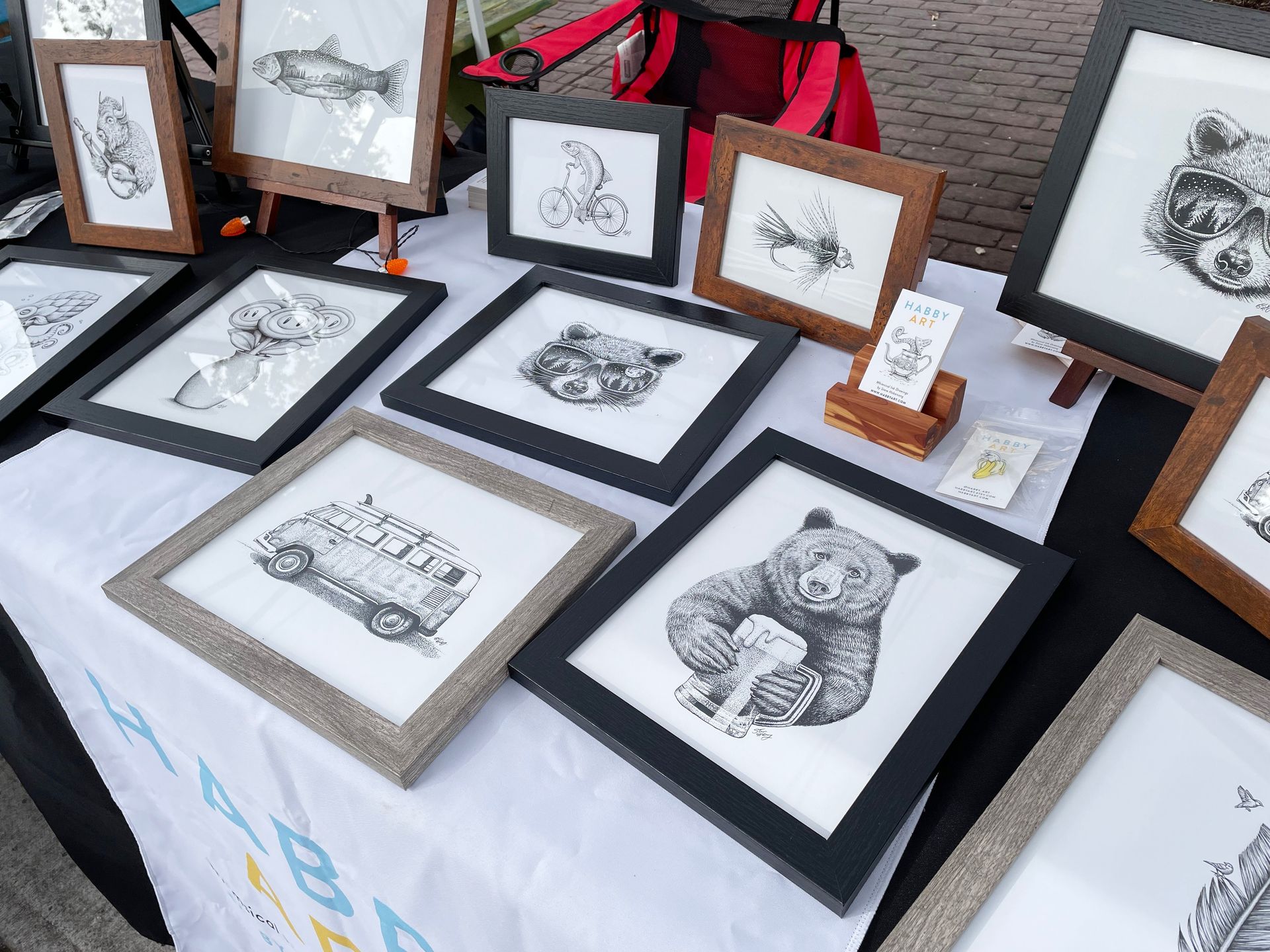 Steve Habersang's pen and ink drawings are a whimsical mix of fantasy and realism with a focus on the natural world, animals, and portraits. From the beautiful to the bizarre, his wide array of subjects offers a broad appeal. Influences include artists such as Dali, Escher, and Rockwell. Habby Art, his business name, sells framed and unframed art prints, stickers, pins, and t-shirts featuring his works.