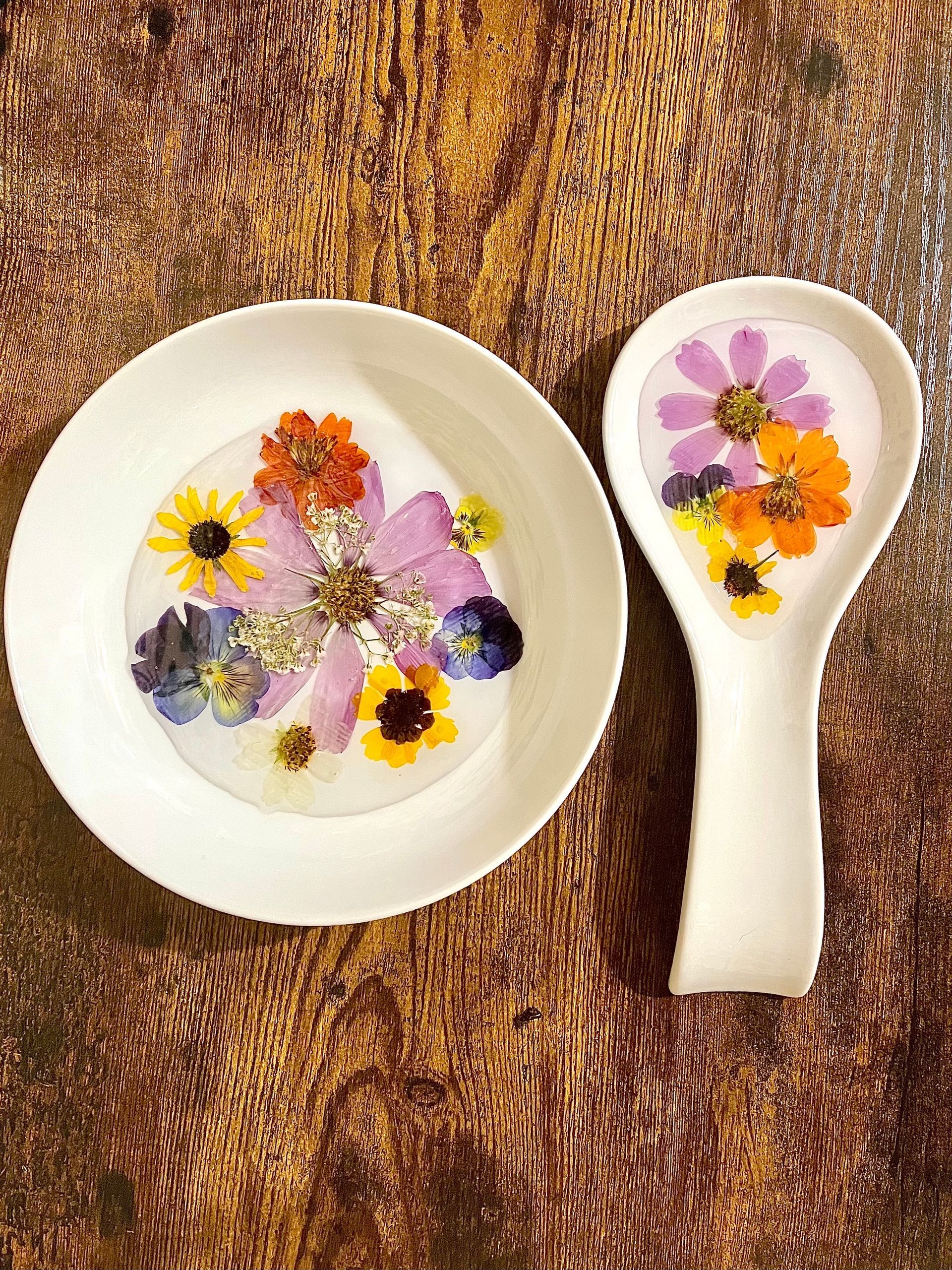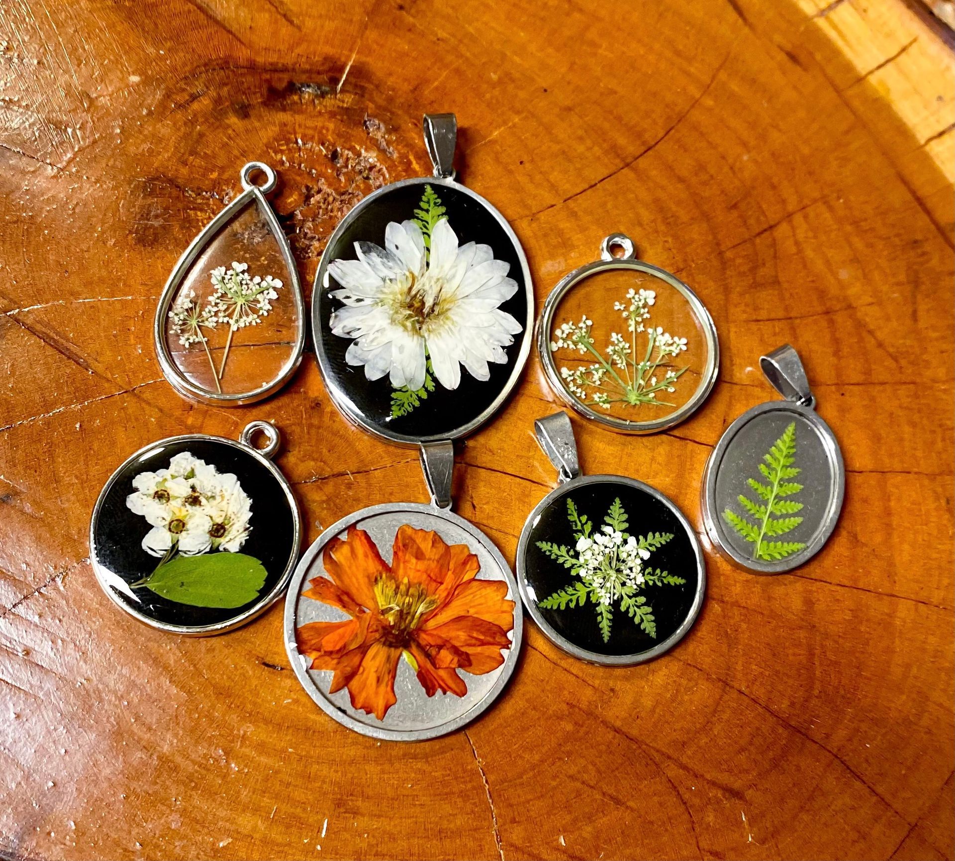 Using a variety of techniques, Taylor preserves flowers then artfully incorporates them into resin jewelry, wall art, trinkets, cyanotype printed clothes and home decor. Her specialized floral preservation transforms meaningful blooms into lasting keepsakes! Customers can commission custom items featuring their special flowers from any occasion so their beauty can be enjoyed forever.
